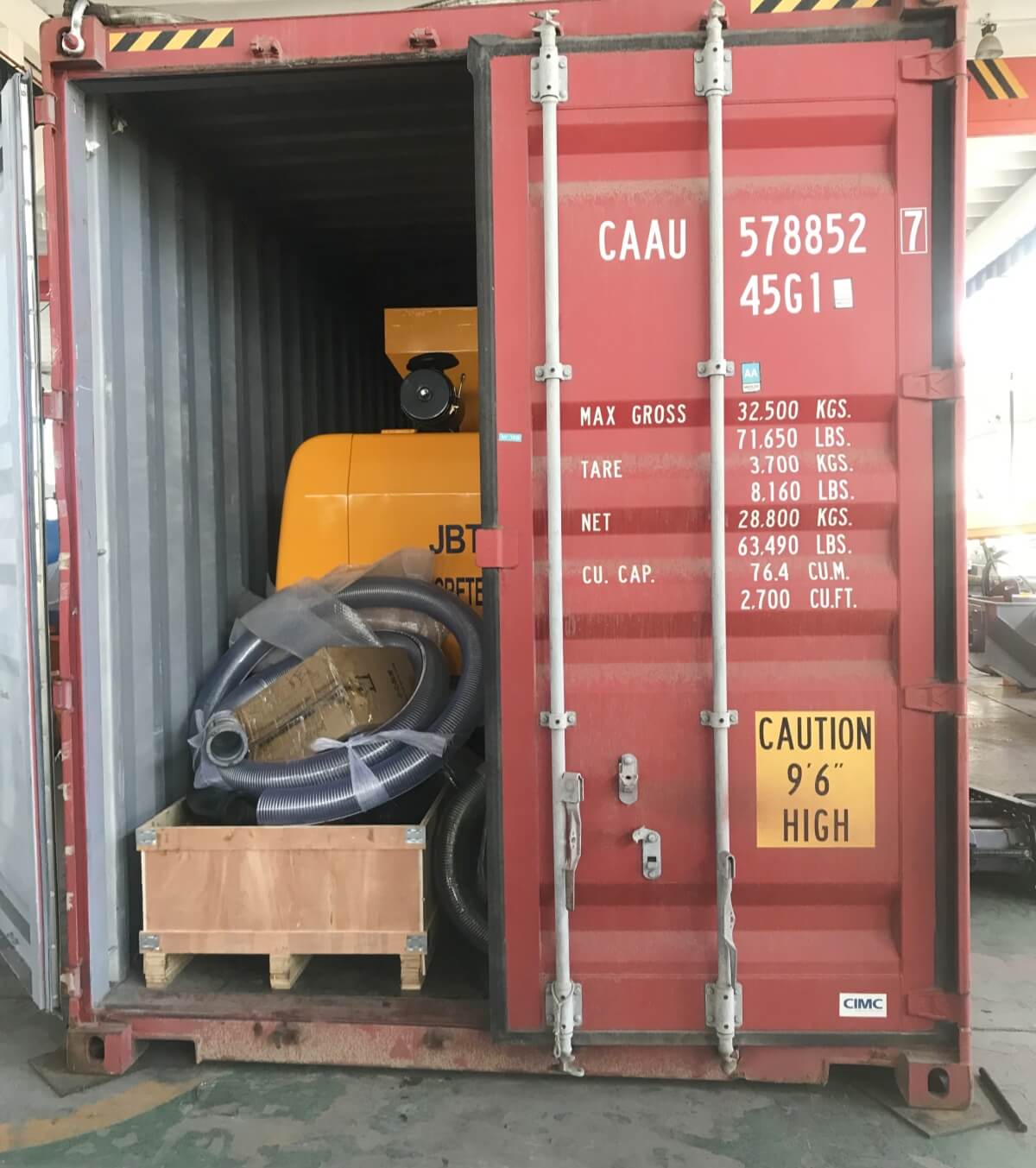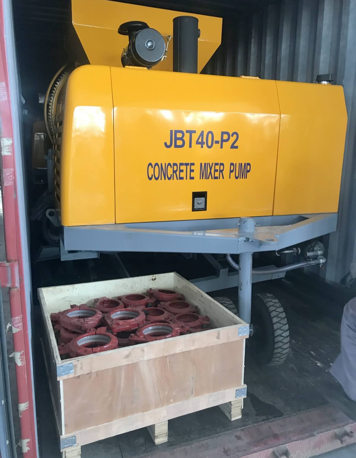 Concrete mixer pump packaging and delivery: