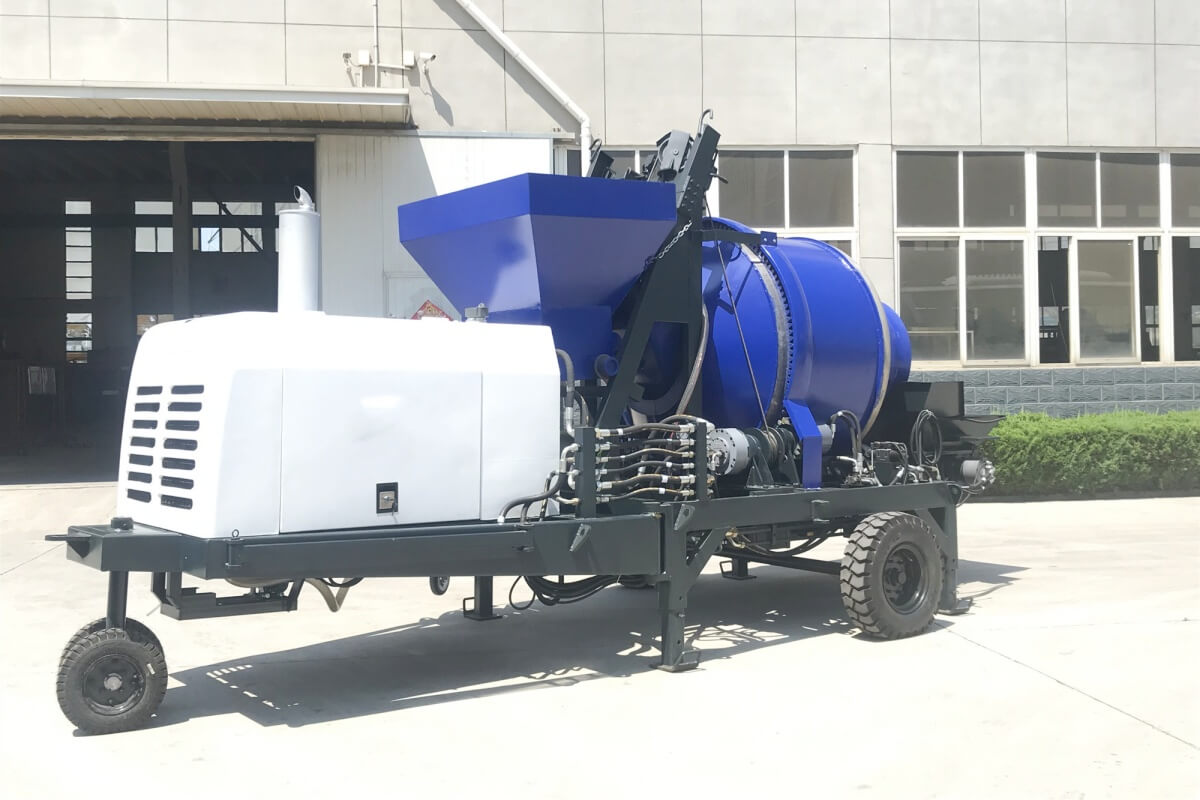 The concrete mixer pump integrates the mixing and pumping functions into one. This concrete mixer pump is used to mix and pump concrete to different distances, such as tunnels, bridges, roads, or high-rise buildings at different heights.