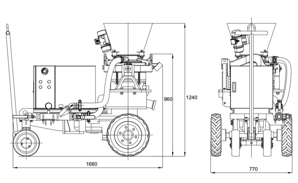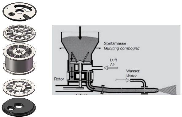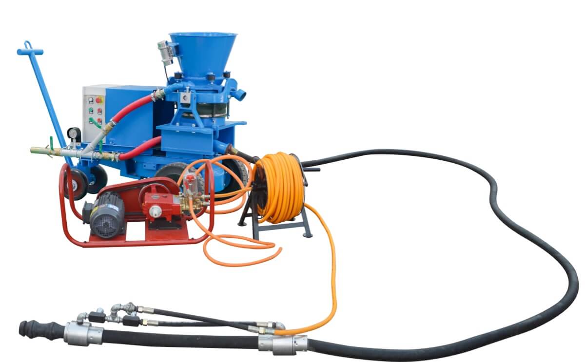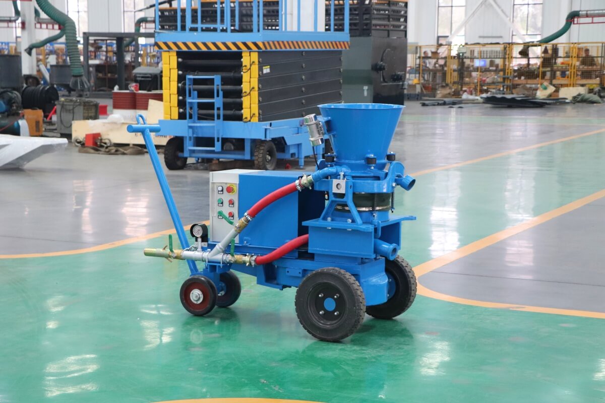 GZ-3ER/SC Dry mix gunning machine adopts the principle of forced feeding pneumatic conveying, which uses compressed air to evenly convey the gunning material to the spray gun to achieve continuous operation.