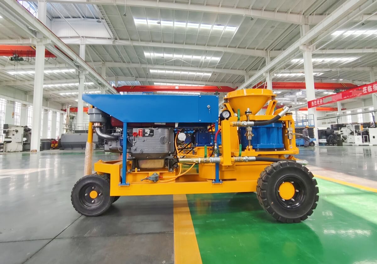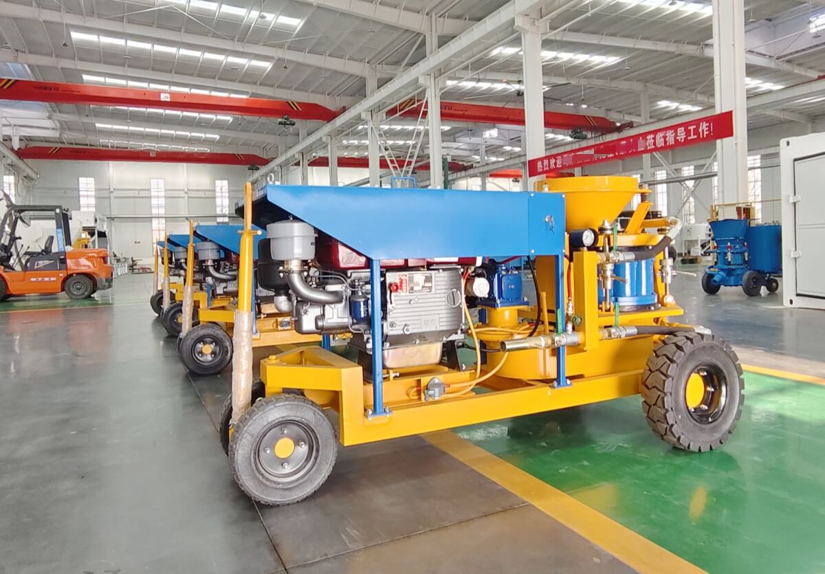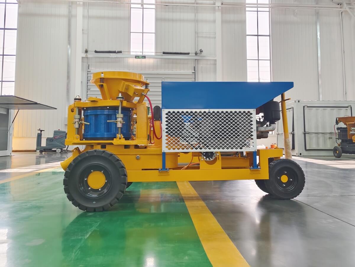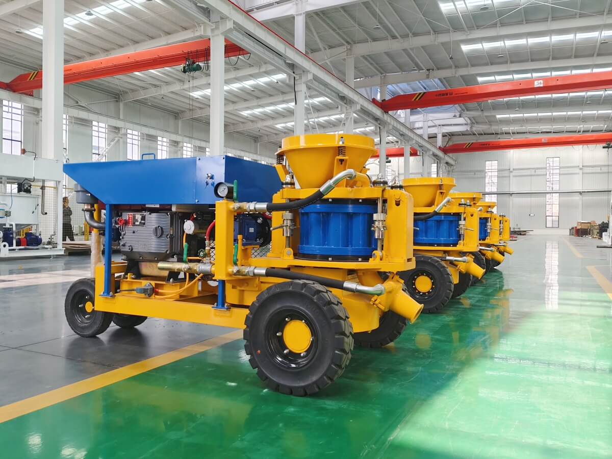 2. Thin flow conveying method with vortex flow, so the spraying flow is even, continuous and steady, to improve the shotcrete quality.